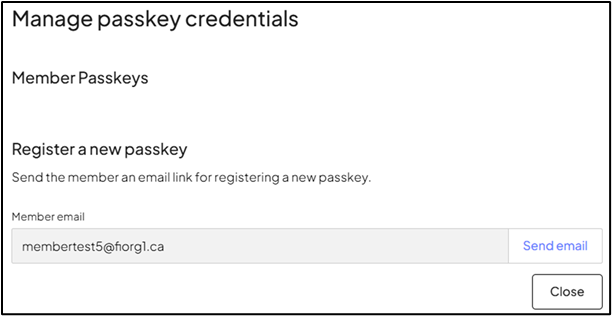 - Un lien sera envoyé par courriel vers la boîte aux lettres du membre. En sélectionnant ce lien, le membre sera invité à ouvrir une session. L’utilisateur pourra ensuite enregistrer une nouvelle clé d’accès comme présenté auparavant lors du processus de création de compte et d’enregistrement de l’utilisateur.