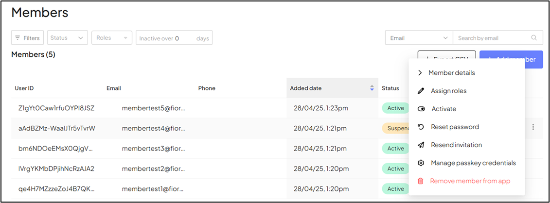 - L’option Activer n’apparaîtra que pour les membres dont l’état est « Suspendu ». Une fois l’option Activer sélectionnée, le statut du membre passera à « En attente ».