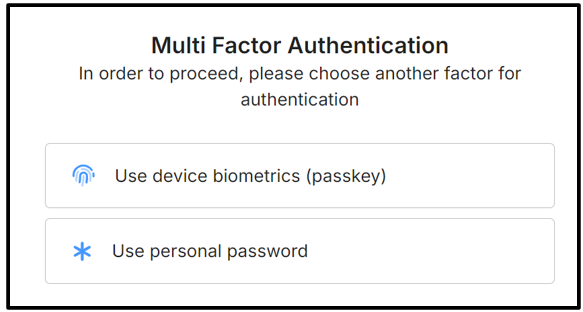 With the passkey set up, you can “Use Device biometrics (passkey)” for MFA as per Step 3 in the Login Process.
