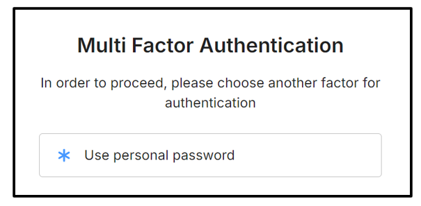 3. You will be prompted to select another factor. Assuming you have not set up a passkey yet, select Use personal password.