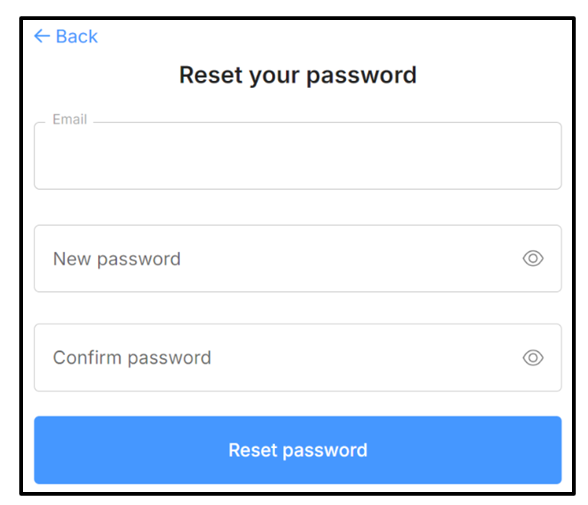 4. Enter the temporary password (provided by your admin) and then create a New password. Registration is complete once you click Reset password.